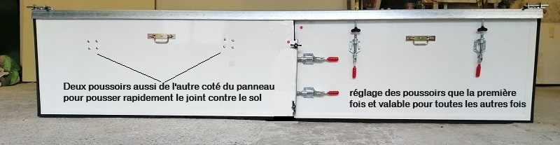 le montage se fait sans s'avoir faire et sans aucun outils il suffit uniquement de pousser les poussoirs sans recherche et la compression du joint contre le sol est automatique et votre étanchéité à 100%