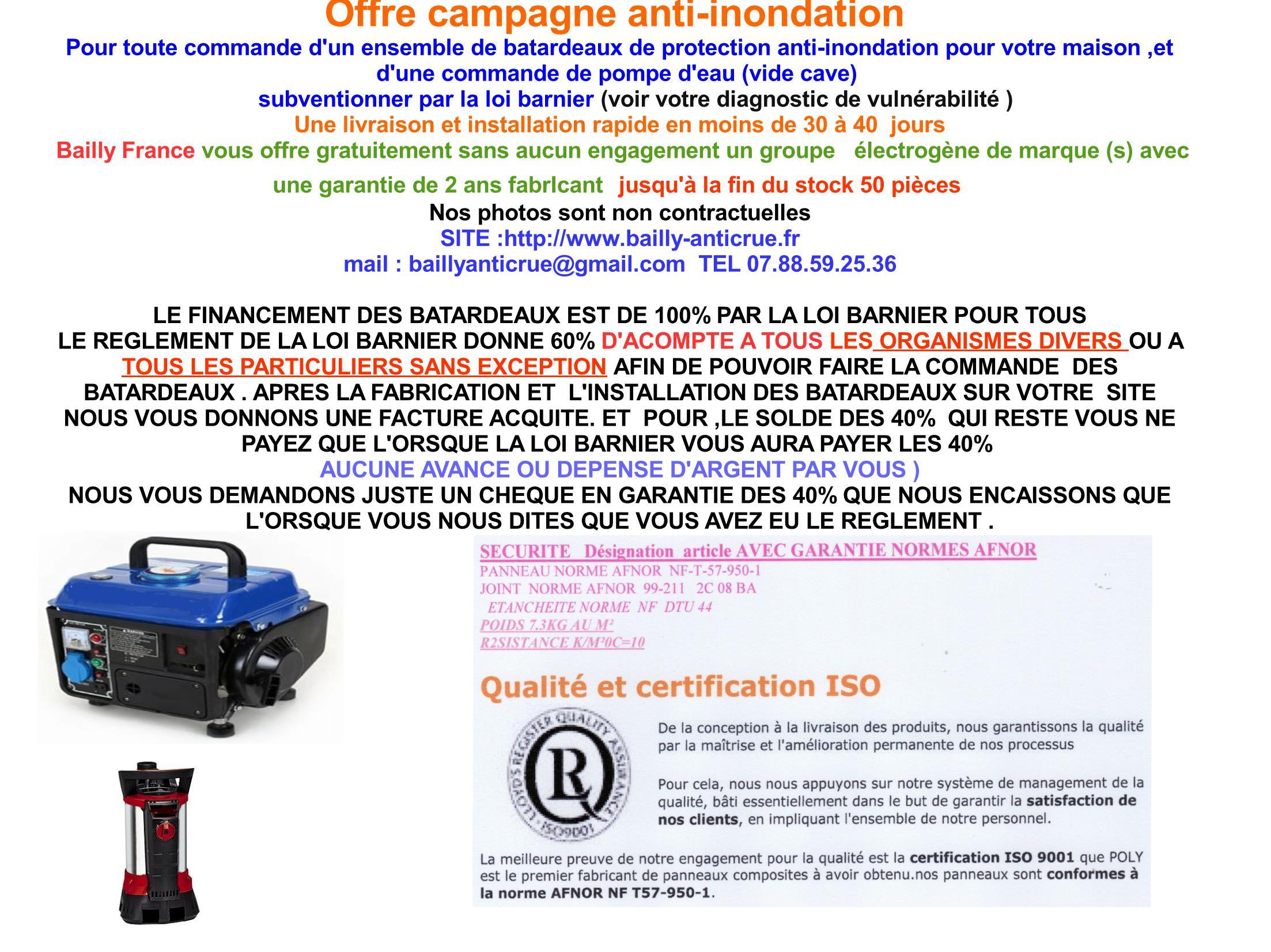 La barrière anti inondation LARAPIDE ou STANDARD pas cher est un modèle autobloquant anti inondation sans profils latéraux et sans aucune fixation aux murs ,le batardeau anti inondation est adaptable à toutes les dimensions d'ouverture de porte de maison , ou de garage,c'est un système d'ispositif contre les crues il est comme un barrage de protection amovible étanche contre l'eau; fabriquant bpi fait maison idéal sur mesure pour protéger des garndes ouvertures de garage , de maison ou baie vitrée. la barrière ou le batardeau anti inondation se met en place rapidement en quelques secondes sous pression étanchéité même en cas d'eau agitée pour un prix compétitf directement d'usine.